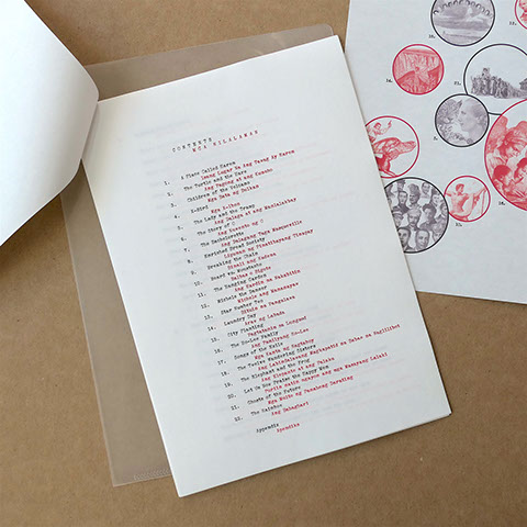 Black and red printing, 16 pages and a double-sized appendix spread, contained inside a clear folder/protector.